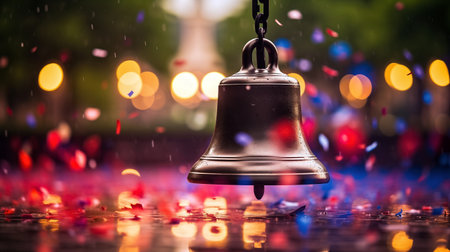 The dark background accentuates the elegance of the vintage hand bell. Creating using generative AI tools