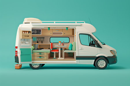 van with pop-up bed, ready for a rest after long day of driving, created with generative ai