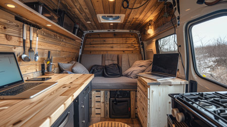 Van-dwelling vanlife, embracing freedom of life on road, exploring the world from the comfort of a cozy van, experiencing adventure, nature, and community while living a minimalist and sustainable lifestyle