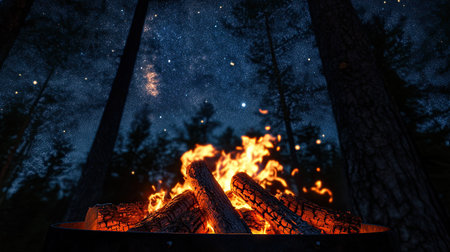 Bonfire scene under the stars in the forest