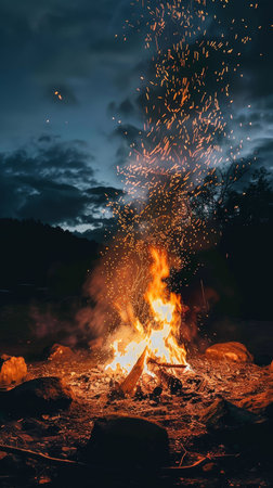 Bonfire scene under the wild sky