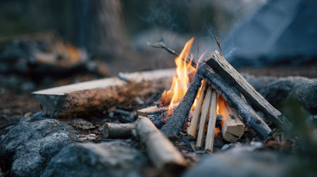 A campfire burning brightly the flames providing warmth and comfort created with Generative AI