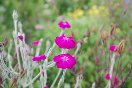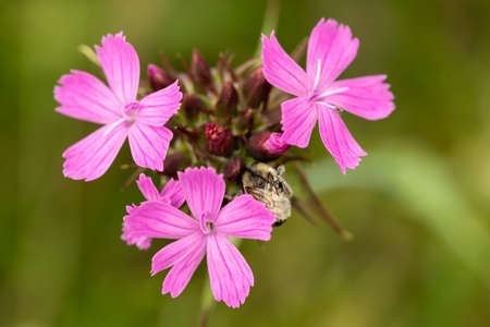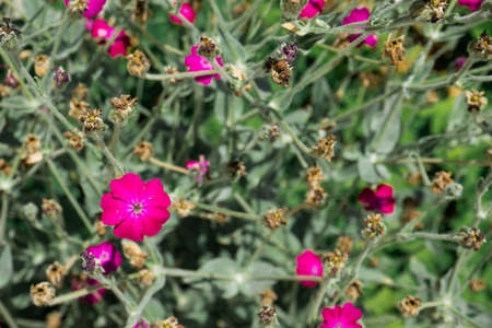 Close up image of Flowers of a perennial plant Silene dioica known as Red campion or Red catchfly