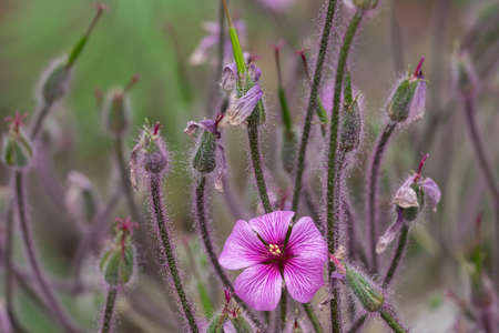 common wild flower of paths with open petals and where you can see its reddish stamens protruding
