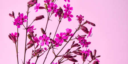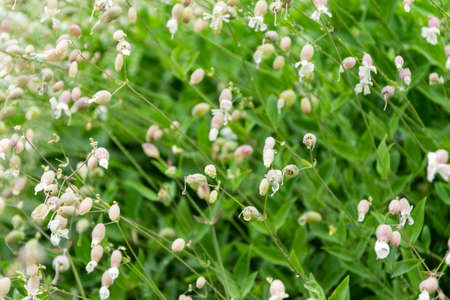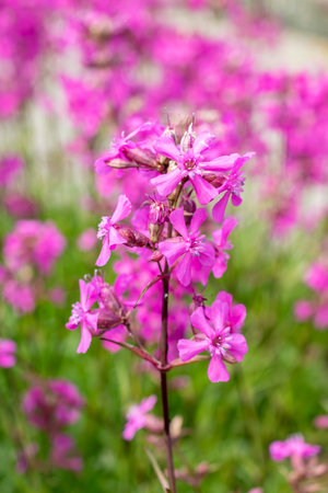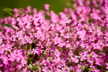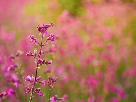 Blooming sticky catchflies (Silene viscaria). A field of blooming pink herbs