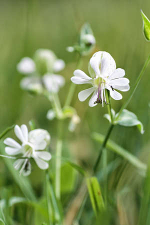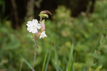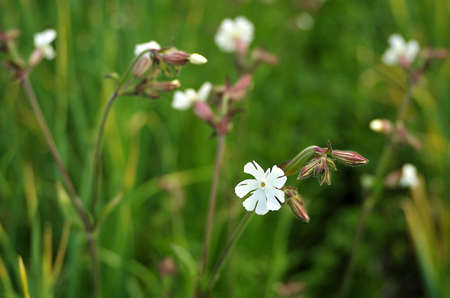 A wide shot of Silene swaying gently in the wind, realistic photography style, bright and vivid colors, natural lighting.