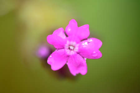 Flower with five purple petals and yellow stamens. Out of focus background and selective focus and bokeh effect
