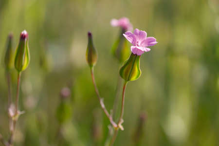 pink wild flower in the meadow, macro photo with shallow depth of field