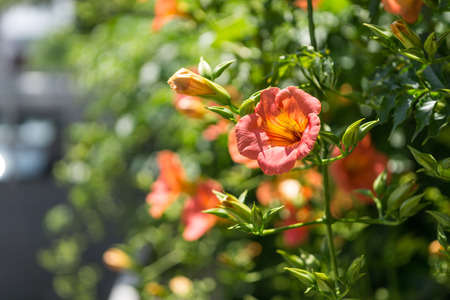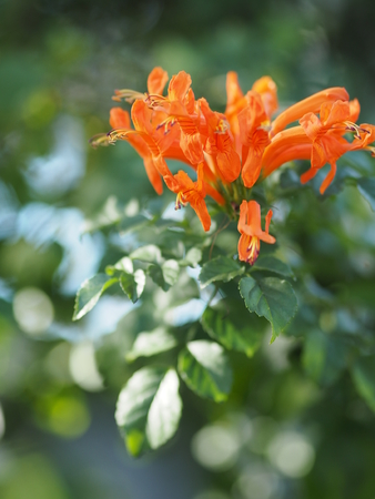 Trumpet Vine flowering Orange, Beautiful plants in summer