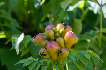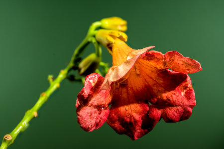 beautiful close up of the flowers of a trumpet vine, popular exotic ornamental plant specie from America
