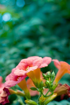 A closeup shot of trumpet creeper flowers - great for wallpaper