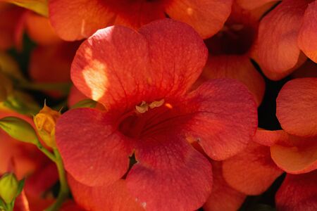 red campsis tagliabuana flowers in nature, note shallow depth of field