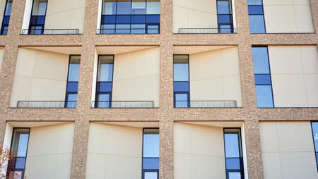 Architectural details of modern apartment building. Modern european residential apartment building complex.