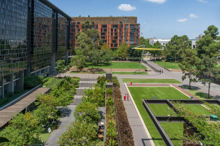 Sydney, Australia - January 26, 2020: Chippendale Green park with Halo wind powered kinetic sculpture. View from above