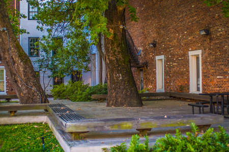 Augusta, Ga / USA - 07 10 20: Brick building and beautiful landscape background with trees