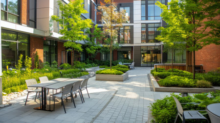 Serene Urban Oasis: Modern Apartments Surrounding a Lush Green Courtyard