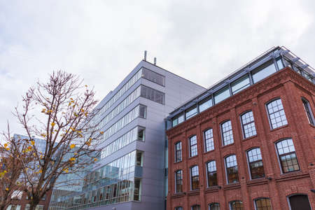 Modern apartment buildings on a sunny day in autumn. Facade of a modern apartment building.