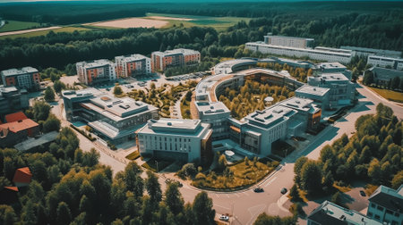 Generative AI Aerial view to industrial zone and technology park on Karlov suburb of Pilsen city in Czech Republic, Europe. European industry from above.