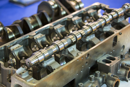 Camshaft and hydraulic compensators on the repair table. Close-up