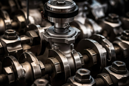 engine closeup parts, valves, bolts