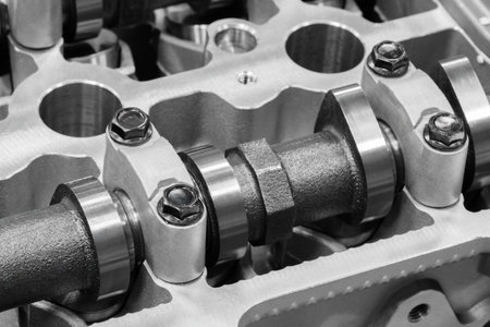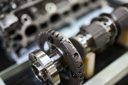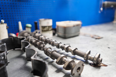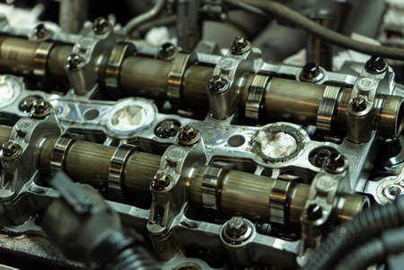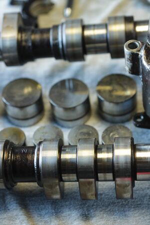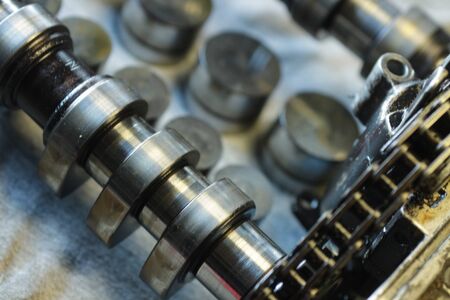 Detail of Car engine camshafts disassembled for maintenance