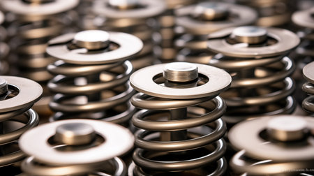 close-up photograph capturing multiple valve springs, providing detailed insight into their structure and function within mechanical systems.AI Generated
