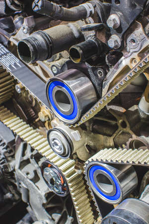Detail of Timing chain of the car engine disassembled for maintenance