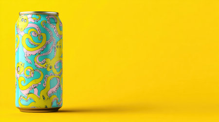 Vintage soda can showcase an octopus pattern that captures the playful spirit of the 80s with its lively pastel colors and wide branding area.