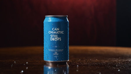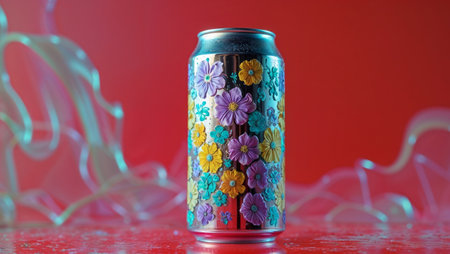 AI Generated. A Floral Decorated Aluminum Beverage Can In A Red Setting