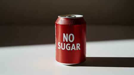 Refreshing beverage can emphasizes sugar free choice, promoting healthy habits and raising awareness about sugar consumption