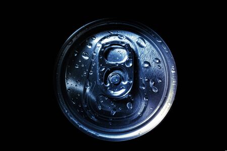 top of a can tin with water drops close-up on a black background