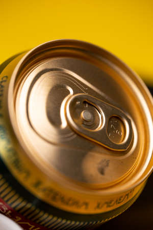 metal yellow jar from beer close-up.