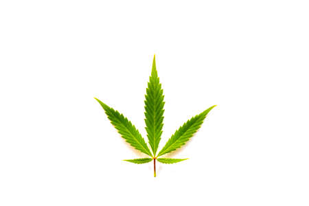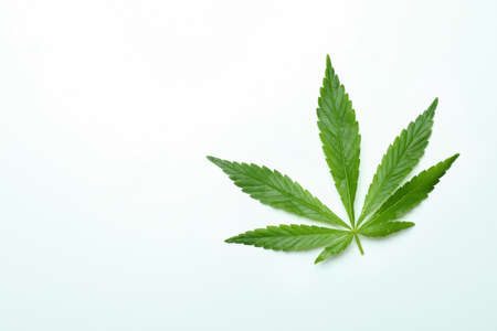 One green cannabis leaf on white background