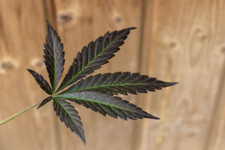 Cannabis marijuana leaf closeup dark background. leaves of a marijuana