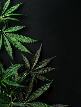 fresh cannabis leaves on dark background