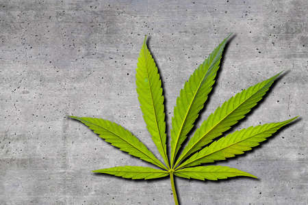 cannabis leaves on a light gray concrete background
