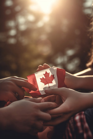 Canadian flag on nature summer background, symbol of Canada Day, with copy space