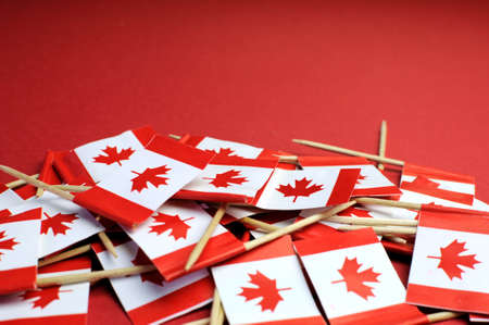 Abstract background of Canada red and white Maple Leaf national toothpick flags for national emblem or public holiday event, with copy space for your text here