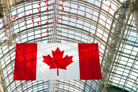 Canadian flag and glass roof in the background
