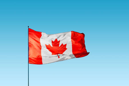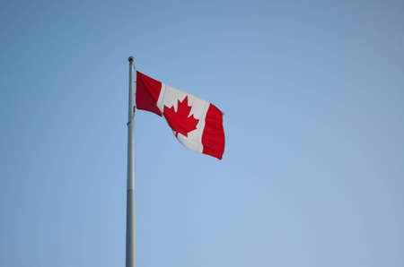 Canadian National Flag in the wind during a sunny summer day.