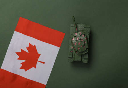 Toy tank with Canada flag on green background