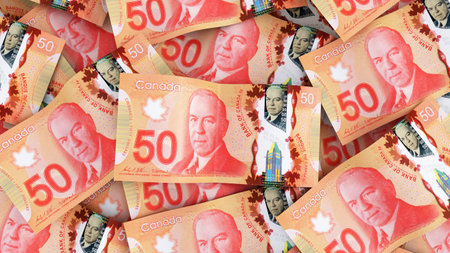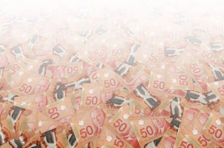 Money of Canada. Canadian dollar bills. CAD banknotes. 50 dollars. Business, finance, news background.