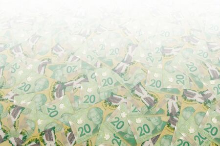 20 Canadian dollars bills lies isolated on white background with copy space. Rich life conceptual background. Big amount of national currency wealth