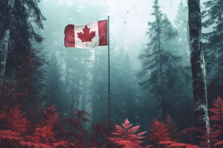 Canadian flag on nature and maple background, Canada Day