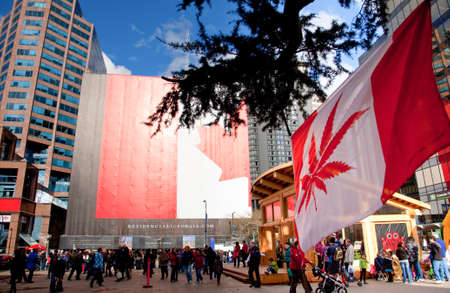 two different Canada flags at Robson Square during Vancouver 2010 Winter Olympics, Vancouver, British Columbia