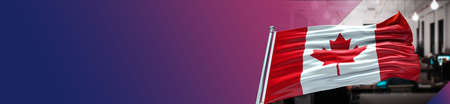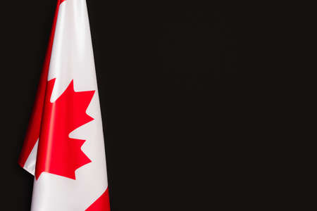 Canada flag, realistic waving fabric flag. 3D illustration on dark background.