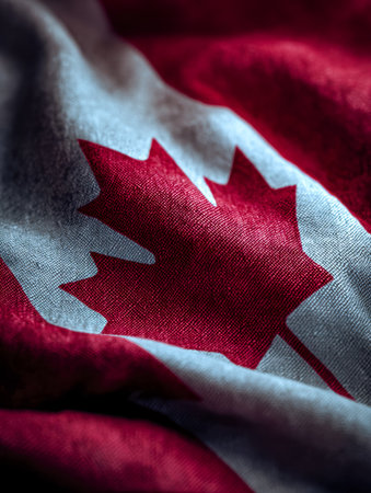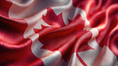 A close-up image showcasing the flowing texture of the Canadian flag with vibrant red and white colors, symbolizing national pride and heritage.