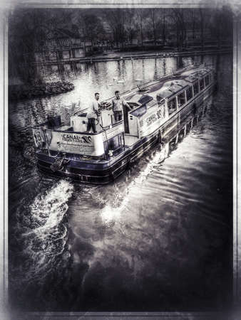 Reims France February 24, 2021 View of boat moored in the city of Reims during the coronavirus outbreak hitting France