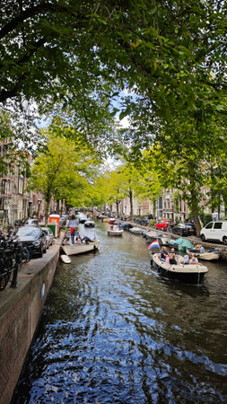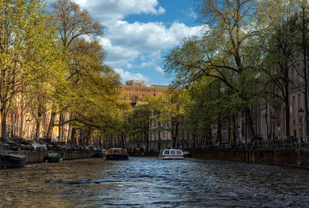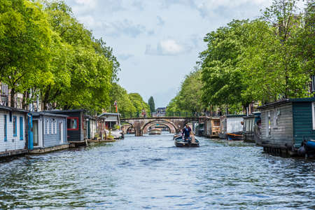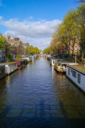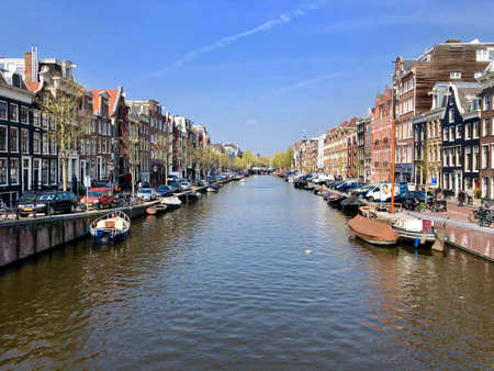 Beautiful day on the Dutch canals of Amsterdam in Holland,Netherlands