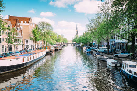 View of one of the Unesco world heritage famous city canals (Prinsengracht) of Amsterdam, The Netherlands.